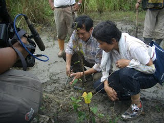 台大地質系教授陳文山(左)於2009年9月9日到永揚場址鑑定技師