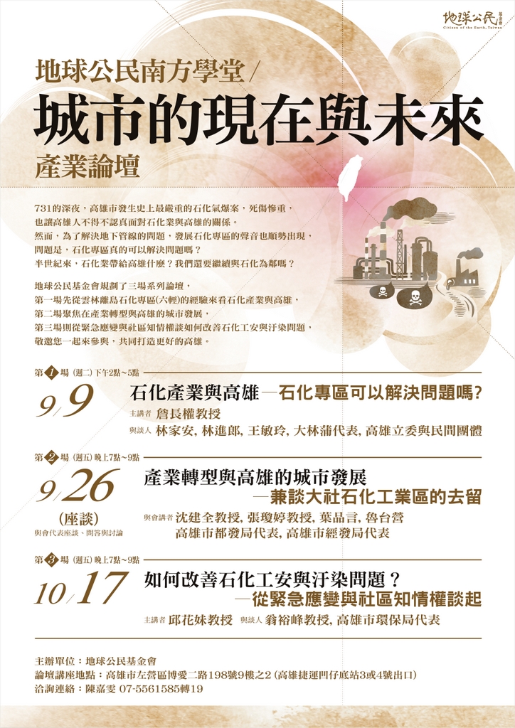 地點:地球公民基金會高雄總部(高雄市左營區博愛二路198號9樓之2)