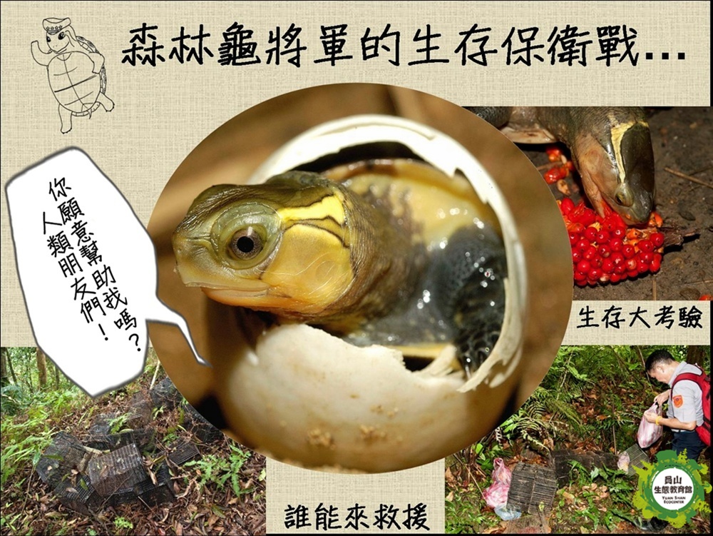 龜將軍生存保衛戰,除了末端法治、查緝與收容工作,更需提升大眾對食蛇龜的認識與關心!員山生態教育館邀請有興趣推廣生態保育的學校教師與相關工作者,認識食蛇龜的生存危機,並將現場演示的『保育教育活動』帶回去,與學生或夥伴們分享喔!