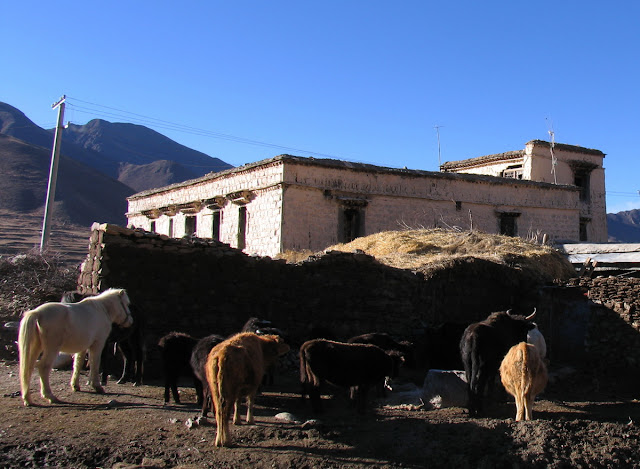 以下四張照 片,是我在2005年初冬去甲瑪鄉時拍攝的。照片中的尼姑寺,原有二十多名尼師,但2010年得知已被驅逐十多位。隨著甲瑪礦區的不斷礦建,原本建在山里 的多座小寺院被迫放棄,僧尼被驅逐;多個村莊的農牧民被強行遷移,村落被改建成礦區倉庫。而周遭具有信仰傳統或歷史價值的聖蹟被破壞,其中包括蓮花山大士 的修行洞、朝聖者朝覲桑耶寺的路線、古老的天葬台、拙樸的岩畫等,以及神山、聖湖和溫泉。