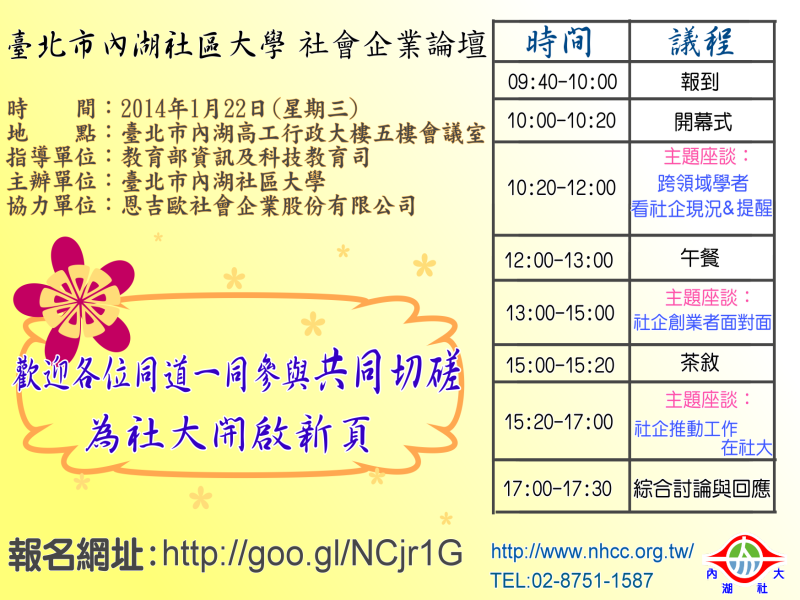 主辦單位:臺北市內湖社區大學