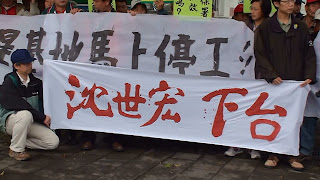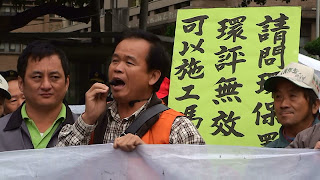 「請問環評無效可以施工嗎?七星基地立即停工!環保署長沈世宏下台!」后里農民高舉標語,從行政院、監察院、環保署、再到立法院,抗議的路走的多麼艱辛。為中科三期奔走訴訟多年的律師林三加,在行政院前當場痛哭,感慨行政賤踏司法,感慨司法竟不能維持社會正義。