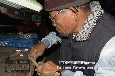 Pavavalung,我們都跟著他們家的晚輩叫他「ga-ma」。撒古流說:「我的漢名是許坤『信』,我爸的漢名叫許坤『仲』,我們的漢名都是在戶政辦理登記時,戶政人員取的名字,所以我跟我爸是『兄弟』!」真是聽得我哭笑不得,而他更是一臉不屑。ga-ma是一位有名的排灣笛雕刻家與演奏者,經常四處表演排灣笛,他也很樂於與我們分享他的笛藝,常會在我們的要求下,吹著聽起來如泣如訴的排灣樂曲,我問:「你們節慶的時候有歌嗎?有沒有快樂一點的曲子?」「有啊!」隨即另外一首樂曲就從ga-ma的竹笛被吹送出來,但我怎麼聽起來還是覺得悲戚,沒有一點快樂的感覺,莫非排灣真的是一個相當內斂、含蓄,甚至帶點憂愁的民族?