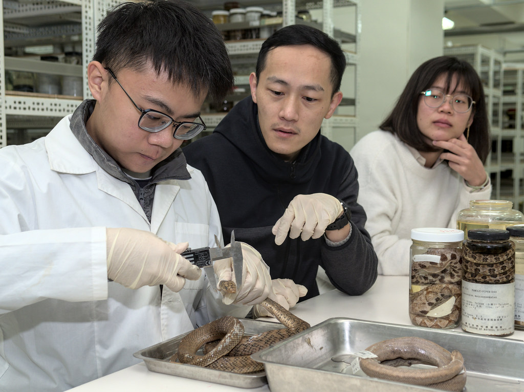 台中市常春藤中學學生黃晨瑋與國立自然科學博物館副館長黃文山帶領的生物學組研究團隊,花一年多時間,深入研究館藏33種台灣原生種、1176件蛇類標本,證實在演化時間上較晚出現的類群眼睛越大;陸生的蛇類眼睛比水生蛇類大;日行性蛇類眼睛比夜行性大。今年1月登上國際知名期刊《生態與演化前沿》,並獲世界知名蛇類權威讚賞。 由黃文山帶領的研究團隊指出,...