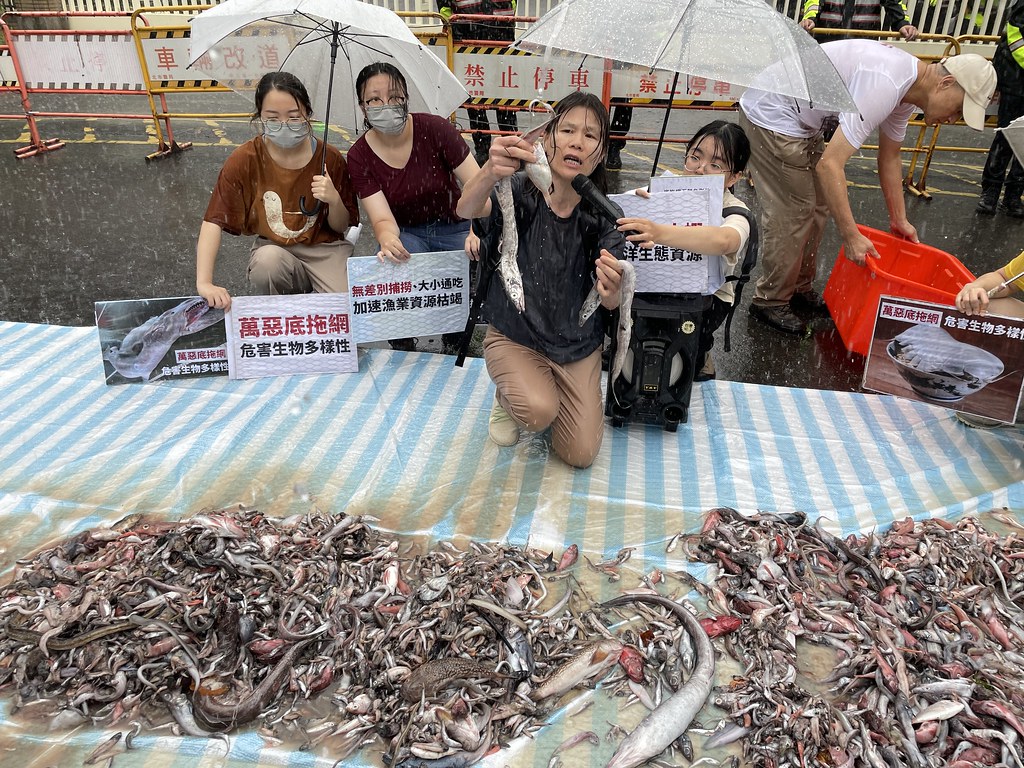 動保團體赴行政院前「倒魚」陳情 籲全面禁止底拖網