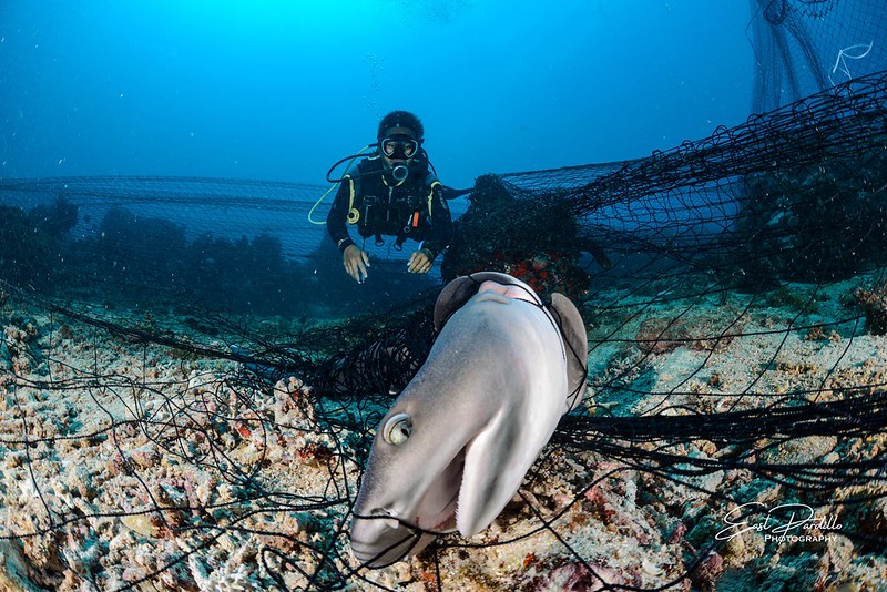 來自各國的潛水員5日在菲律賓「卡曼加海洋生態旅遊公園與保護區」(Kamanga Marine Eco-Tourism Park and Sanctuary)潛水時,意外發現一張籃球場大小的漁網,纏繞珍稀的白鰭鯊與玳瑁,最終只救出兩隻鯊魚,凸顯保護區管理不易,以及漁具使用不當造成的混獲問題。 海洋保護區觀光宣傳變調成救援行動 菲律賓潛水教練帕迪歐(East...
