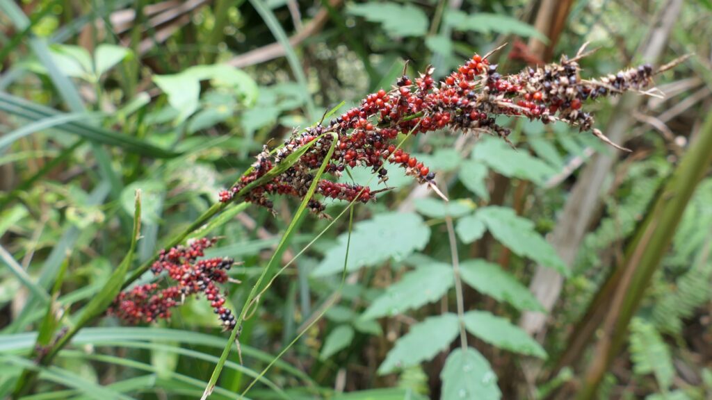 紅色象徵著喜氣,因此每逢春節期間,城鎮街道上的家家戶戶,紛紛掛出紅色的春聯與燈籠,無時無刻散播著過年過節的氣氛。此時的鹿寮坑的山林小徑上,似乎也感染到春節的氣息,也悄悄的掛上成串的紅色果實。這得要從某次與社區居民一起進行社區路殺調查時,當時也是二月,走在竹25縣道上,可以看到道路兩旁的綠色中帶有一點紅色,走近觀察發現是生滿紅色漿果的草本植物,...