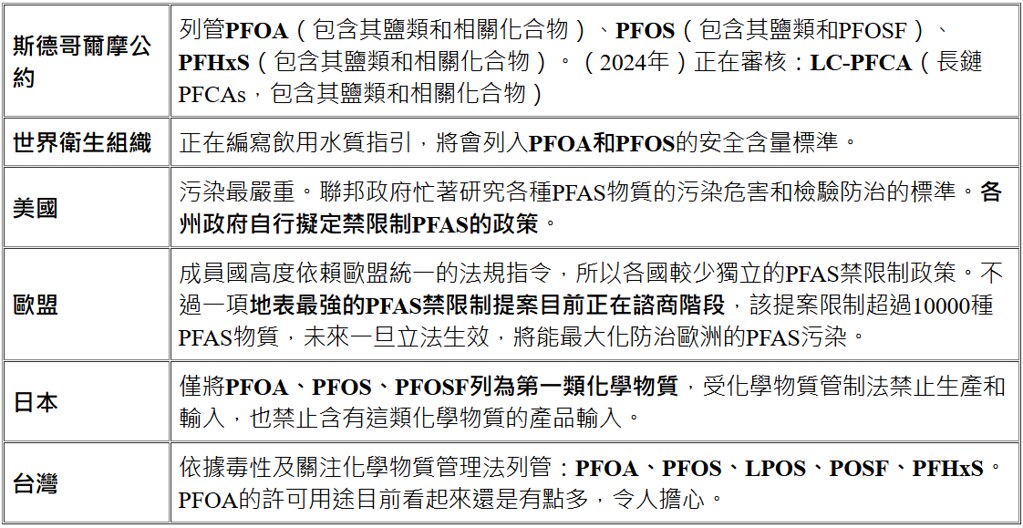 看守綠生活|從零開始認識PFAS——誰管PFAS要怎樣?國際上對PFAS的管制態度