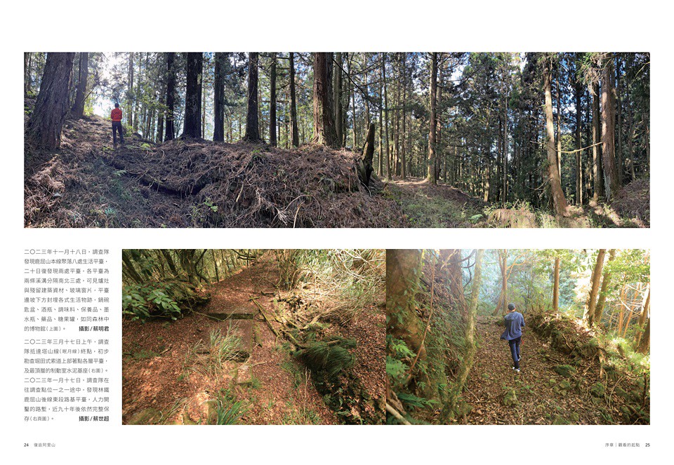 「你們先跨過封鎖線吧,我開始記錄軌跡。」王迦嵐開玩笑地說。克難坡前有公告標示前方林道無法通行,現場並有高山協作員拉設的登山攀繩橫阻。而在前一天的破碎地形中,頻繁的下切與陡上,調查隊已有一名傷員;熟悉林鐵物件的陳柏良只能留守基地,協助判斷回傳的影像。 跨過攀繩不久,崩塌所致的岩屑錐上長滿高大芒草,隊員蔡世超以草刀開路續行,直至再無法推進為止。...