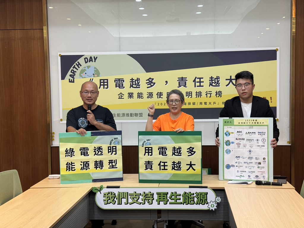 台灣再生能源推動聯盟今日公布「2023年度用電大戶綠電使用評比」報告,分析國內前30大用電的企業的綠電使用狀況。TRENA秘書長高如萍指出,這些產業可能是布局全球,但用電意味著在當地造成污染。今天(22日)也是世界地球日,希望用電大戶帶頭展現減碳責任。 各大企業之中,東和鋼鐵在台灣自發自用及採購的綠電占比1.79%,位居榜首。至於台積電,因未公開「用電量」...