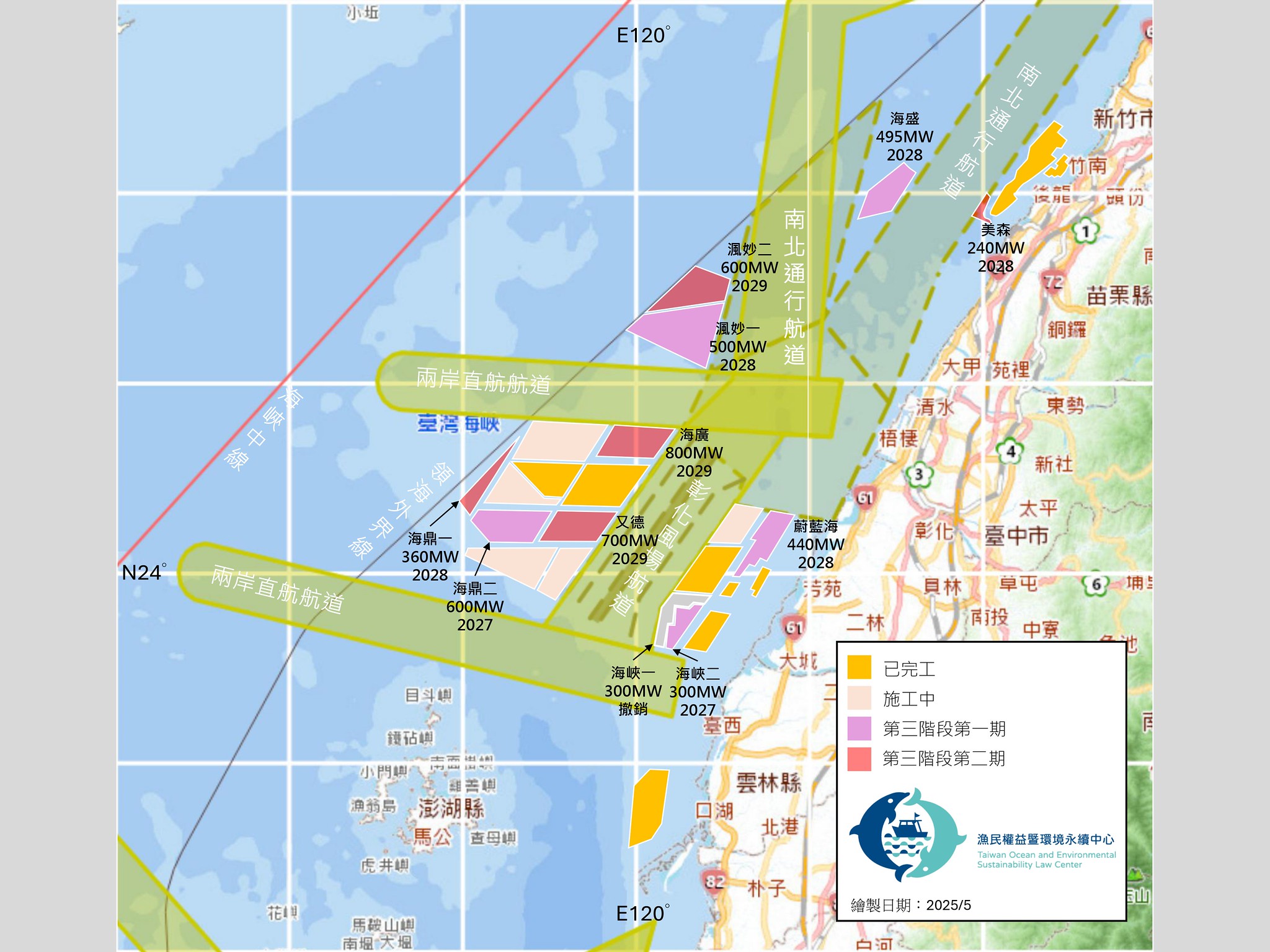 一片海域擠六座風場 環團呼籲彰化風場航道以東停止開發