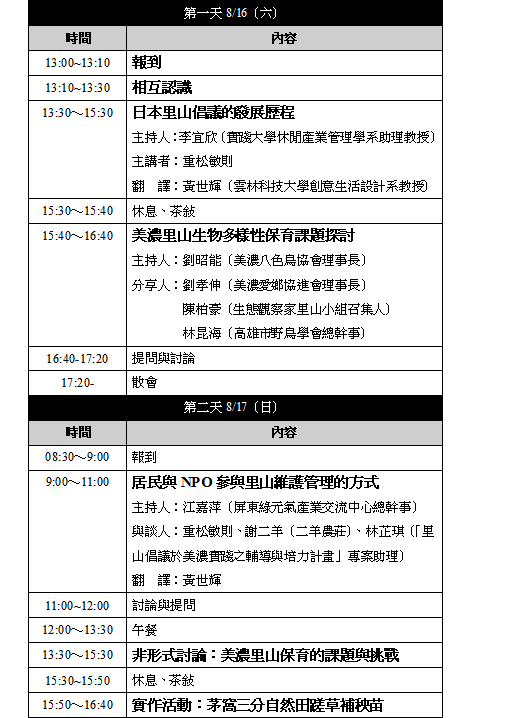 - 日本里山經驗工作坊流程表: