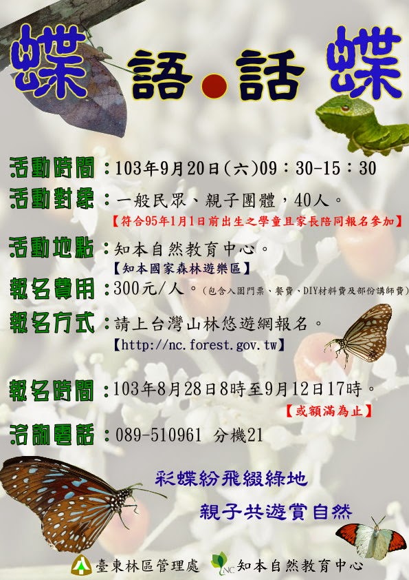 六、報名方式:統一採取「網路報名」方式,參與者可逕至知本自然教育中心。