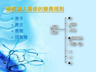 在傳統漢人宗族社會中,本來就有很多的親屬規則,加上漢人家族系統為了堅持「男系姓氏」的傳承,在面臨「不得絕嗣」的壓力下,卻家中無繼承男丁,便衍生出了很多不得不「變異」的解決方案:像是養子、過房、養媳、招贅婚。您分得清楚嗎?
