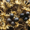 傘狀結構的樹形,葉片集生在傘面枝端,顯示其為陽性植物的特性。嫩葉紅色乃因具有紅色腺毛,但容易脫落,故葉片稍老則轉為綠色。雌雄異株,花小無瓣,雄蕊多數,花絲細長,雌花花柱三裂,蒴果滿布軟刺。