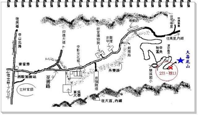 【集合時地】活動當日上午 08:50 於士林內雙溪中央社區之 「大崙尾山」站(站牌名稱)集合。