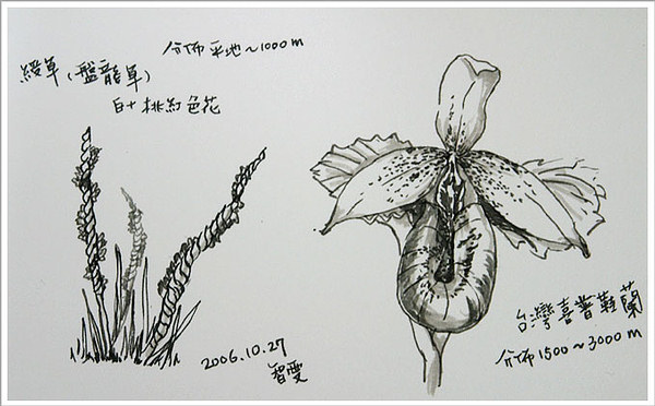 從高海拔的「南湖雛蘭」、「粉蝶蘭」、「喜普鞋蘭」等,中海沷的「香蘭」、「一葉蘭」、「紅斑蘭」、「金線蓮」等,到低海拔的「綬草」、「禾草芋蘭」等等,從平地到高山,都可見到蘭科植物。高海拔蘭科大多是地生蘭、中海拔蘭科最豐富,也是特有種類較多的環境,鍾老師只挑選部分的蘭科植物,依棲地環境從高海拔介紹到低海拔,眾多的照片一張張展示著,種類太多、名字太難記,但株株都令人迷戀,讓我有點兒無法招架。