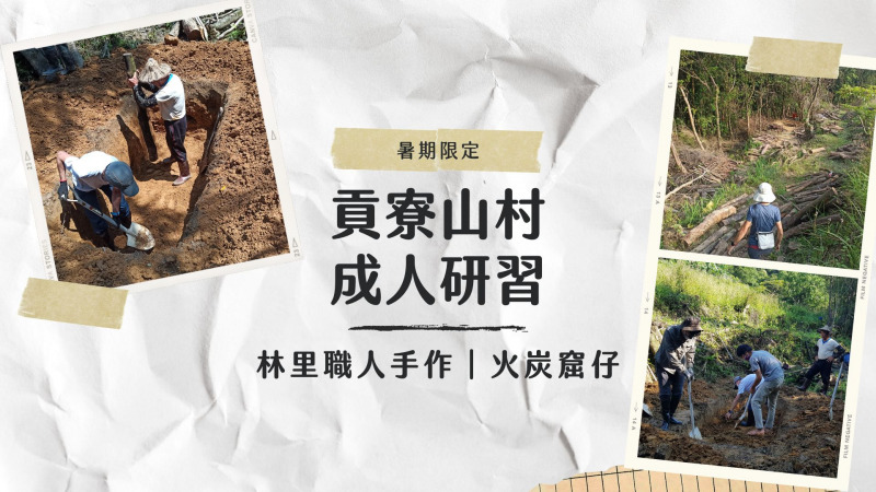 維持著傳統生活方式的貢寮山村,在事事皆已機械化的現代,仍留有許多職人的傳統智慧。照片中所挖的坑叫做「火炭窟仔」,是貢寮山村將木頭燒成木炭用的,這個傳統的製炭方式,至今仍在使用。主要是提供給山下的廟宇進行傳統民俗活動,如媽祖繞境、年尾戲時,神明「過火」時使用。傳統製作成的火炭,成炭後較為細小,加上燃燒溫度較低,安全考量上,所以指定要使用這種炭!