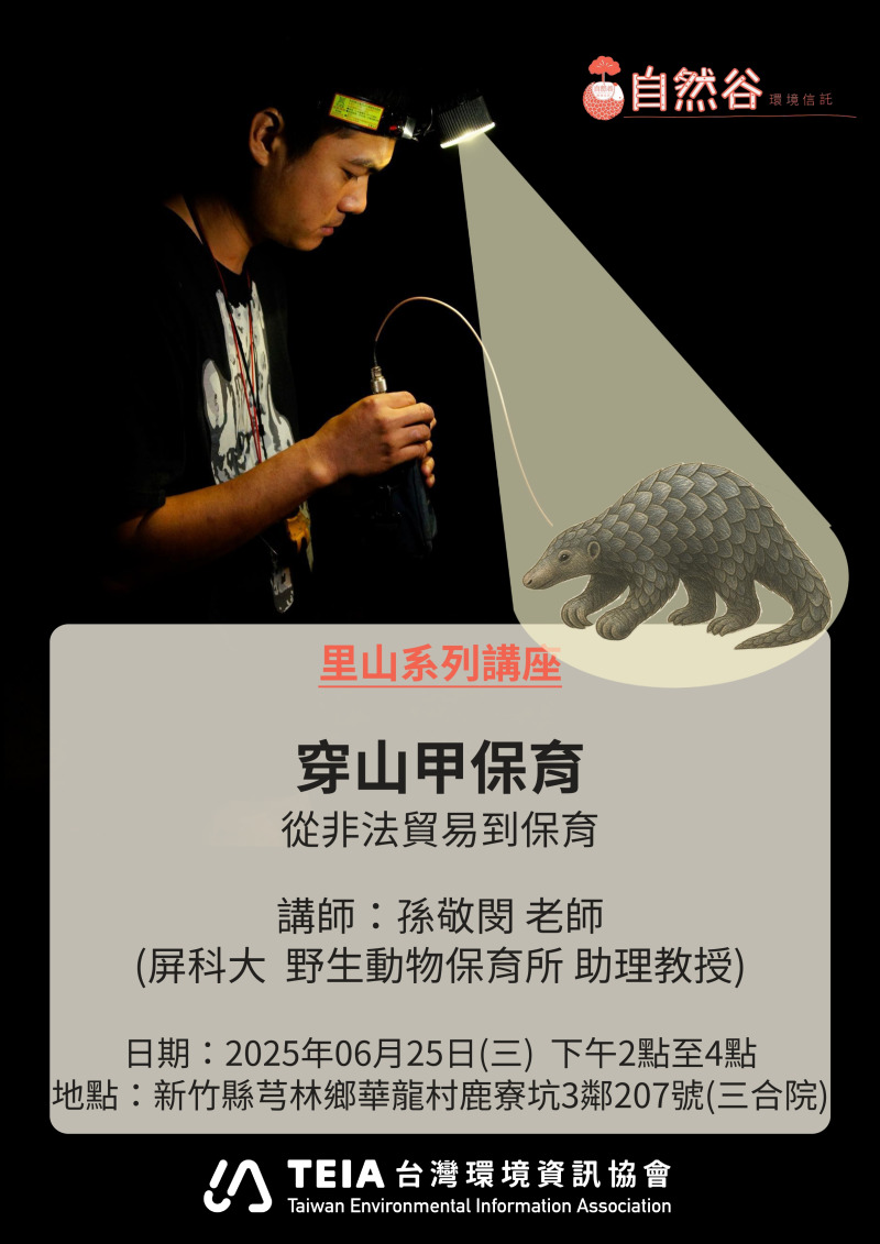 簡介:穿山甲是全球最常被非法交易的哺乳動物之一,其族群正面臨嚴峻的生存危機。本場講座將帶領您認識穿山甲的生態習性,分析非法貿易對其族群的影響,以及全球與台灣在穿山甲保育上的努力。
