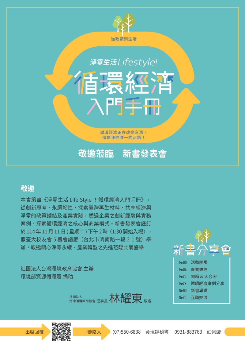 為讓更多民眾認識並支持線性經濟轉型,本會策畫出版「淨零生活Lifestyle!循環經濟入門手冊」,期望藉由民眾日常最容易接觸之食衣住行開始,我們生活中丟掉的垃圾,可能是別人的原料;我們忽略的剩食,正在成為新創事業的起點。透過企業案例來認識循環經濟,創造環境、經濟與社會的三重價值。您將看到最前線的循環經濟案例、掌握國際認證與政策策略、理解淨零轉型下的必備概念。重新認識「資源再生的力量」,並啟發民眾參與塑造一個更永續的未來。