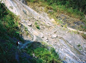 由登山口進入,小心翼翼地經過一處會隨雨季變換水道的水源碎石區,看到的是原住民的園子,小米、芋頭、樹豆和因應四季而生長的果樹,順著地勢在小徑兩側鋪展開來,勤勉的農人以簡易的碎石塊在陡坡上堆疊出一畦畦的旱田,不放棄任何可耕作的農地。長年山居生活的堅毅性格刻劃在伊娜和阿瑪們滿佈縐紋的臉上。