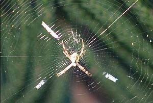 很多人對蜘蛛的第一印象,就是蜘蛛會結圓網。圓形的蜘蛛網是由沒有黏性的直絲以及同心圓狀的橫絲所構成,不同的絲也各有不同作用。研究認為蜘蛛腳末端能夠分泌一種油脂,因此蜘蛛不會被自己的網子黏住。除了常見的圓形網,有的蜘蛛結的是不規則網,而這種絲絲相連的不規則網是比圓網更進化的網型。而有些蜘蛛甚至不結網,牠們用守株待兔的方式,等待獵物經過一撲而上,注入毒液捕食。