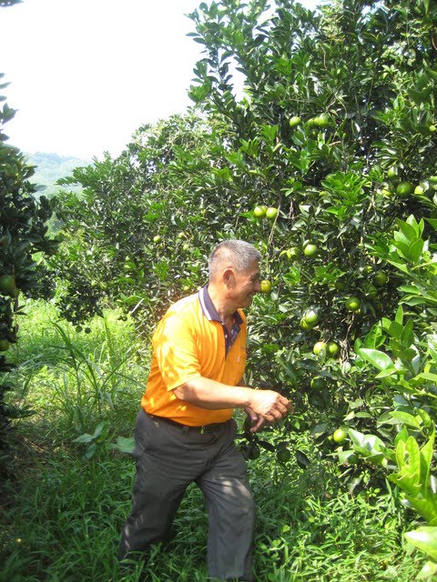 (東山鄉嶺南村長陳顯茂開心地檢視剛上市的柳丁。他說,嶺南村要轉型有機農業,老農才有未來。有機農業的前提是潔淨的灌溉水,絕不能被垃圾場汙染。圖/屏東環盟提供)