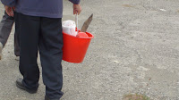 今天環保人員帶著專業設備採樣時,台塑仁武廠也派人到場,但卻只帶一只水桶、舀水瓢,最後還向環保局人員借採樣器材,採上來的底泥樣裝入塑膠袋,而不是依標準程序將樣本密封。