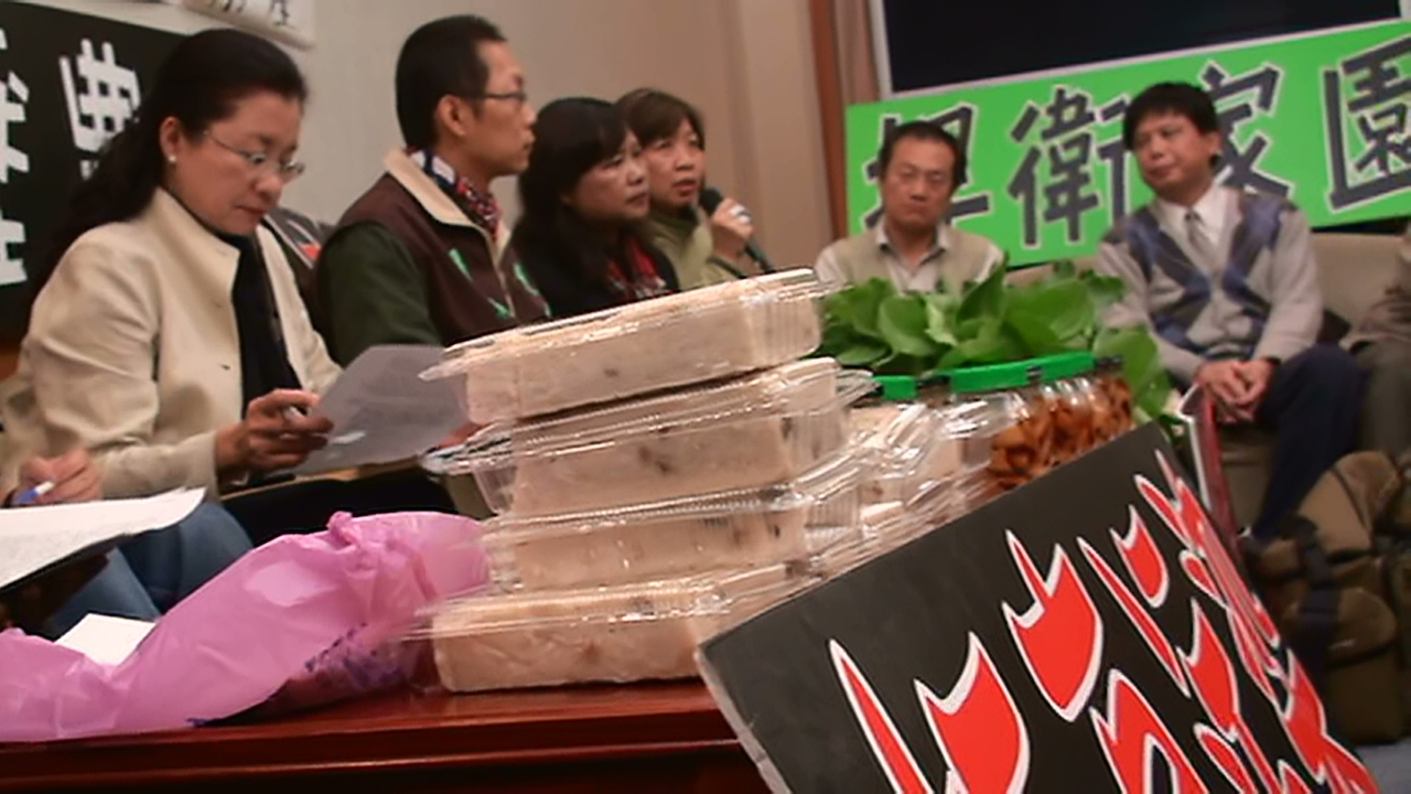 5日冷氣團難得出現空檔,苗栗縣灣寶農民洪箱一早起床,用田裏種的蘿蔔做了蘿蔔糕,帶著剛拔起的蘿蔔、連同之前醃製的醬菜來到台北立法院。蘿蔔糕一切開,濃濃的香氣立刻充滿整個室內。洪箱說:這是土地種出來的東西,請讓我們快樂做農民,繼續種出這麼好吃的東西。