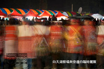 記得1996年的矮靈十年大祭,我與友人開著車到向天湖觀禮,混亂的交通、大片的攤販、滿地的垃圾、髒亂不堪的公廁,真教人不敢恭維;而十年後的今天,這些現象已經有了明顯的改善,顯然主辦單位花了不少心思,民眾的教養也提升許多,讓人頗感欣慰。儘管向天湖的「夜市」依舊,卻明顯多了秩序與整潔;相較之下,大隘祭場的攤販數量收斂許多,而且多是族人所開設,藉機造福鄉里,立意更是令人激賞。