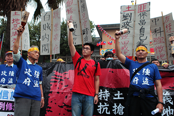 土地正義大聯盟發言人黃國書要求停止浮濫土地徵收。苗栗大埔自救會葉秀桃表示,大埔農民至今還未拿回農地,還有四戶未協商完成,「反對政府強徵我們的地,這跟土匪沒有兩樣。」
