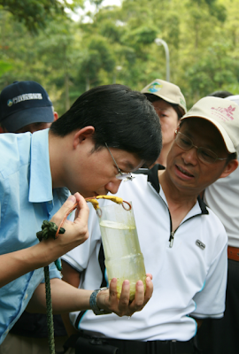 除了讓身體和溪水親近,我們也跟著鎮民離開自己家裡旁邊的井水,到山邊,拿著水桶裝山泉水,體會喝水之麻煩。在鎮上,吃著不知道是不是用霄裡溪水煮的食物、喝著青草茶,體會鎮民長年來的自我說服。因為,企業告訴他們:「我們的水符合法規。」