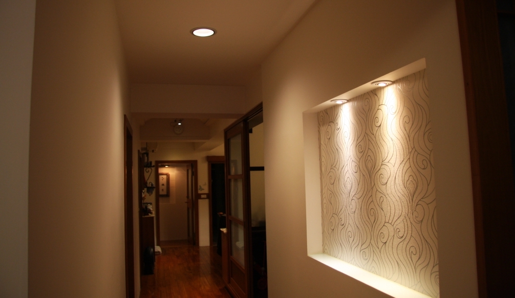 住在公寓的奇生善於利用吊燈、崁燈與畫廊用的軌道投射燈,來營造多樣且溫馨的居家氛圍,然而大量使用照明的用燈,也帶來一筆可觀的電費開銷。於是他依照預算,分批將這些燈具轉成LED、T5燈管與省電燈泡,廚房的傳統日光燈管則打算等到它們壽終正寢時再替換。淘汰這些耗能燈具還有個好處,原先投射燈會產生高溫熱度,使得冷氣機必須多花電力來降低室內溫度,汰換後則可以明顯感受到冷氣效率提升了。