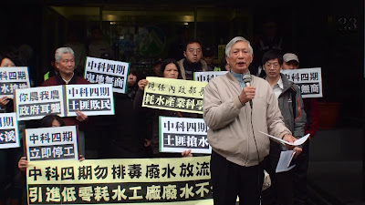 地球公民基金會研究員呂育翊齊要求應提供園區內廠商使用什麼化學物質,且交待廠商會排放什麼、以及長期累積對水生生物的影響。他也提到台灣的總毒性有機物TTO只管制30種有機物,都不是科學園區會排放的物質,不要拿TTO合格就說廢水排放合格,他要求中科正面表列使用的化學物質。