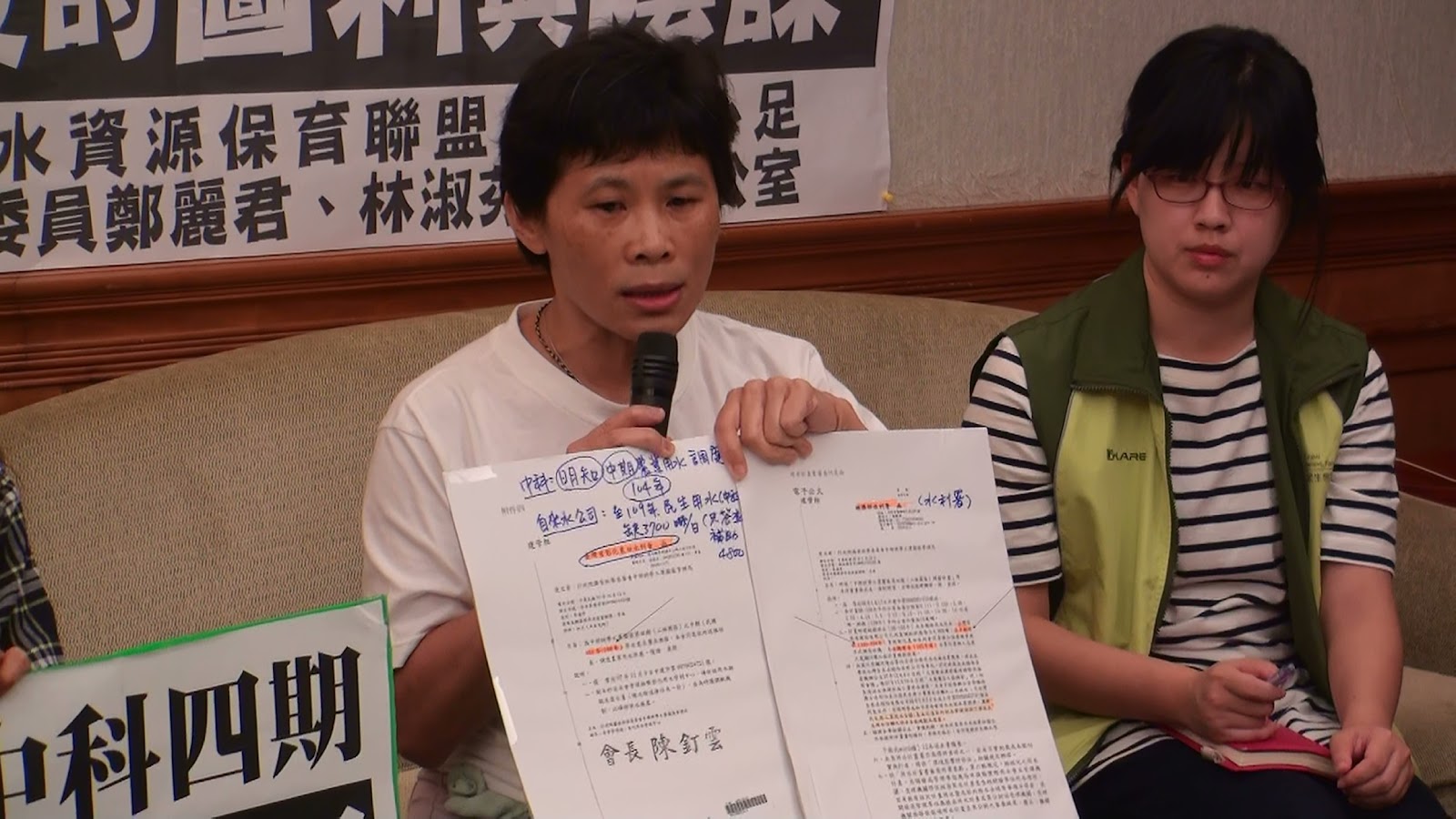 中科四期二林園區中期用水工程爭議有最新進展,台灣水資源保育聯盟發言人陳椒華,今天指中科四期環評定稿本中的「中期用水期程」涉偽造。環評定稿本中將中期用水期程從原審查結論的「(民國)101-104年」改成「101-105年」。