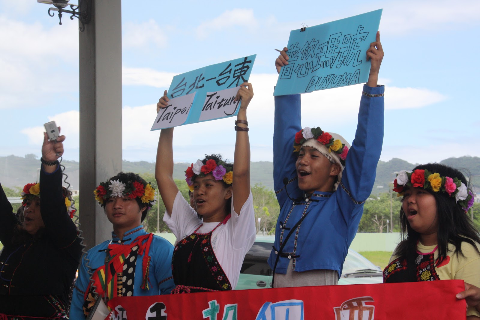 在最後這個關鍵投票日,早上起來一看票數,一度超前200多票的「普悠瑪號」又落後「太麻里號」300多票,此時雙方都已進入5000多票的激戰。我跟年輕人說:「無論如何,今天你們來到火車站宣傳,這個行動就已經贏了。如果我們網路投票的結果是輸在沒有盡力去宣傳讓大家投票,那是我們的問題;如果我們都盡力了但投票結果還是輸了,那就不是我們的問題了。」因為有年輕人開始動員,普悠瑪的長輩也用他們的方式盡力去宣傳,一大早潘進玉頭目、鄭浩祥會長他們就頭戴著花環,慎重地到台東新站打招呼,預告年輕人中午在車站出口外的行動;同時他們也邀請了台東市市長到場,這些都讓我覺得長輩因為感動年輕人的創意與集結,所以也感染了他們用自己那一輩能夠發揮的方式來讓整個行動更順暢更有能見度,這剛好能跟年輕人的行動作互補,同時也讓我看到卑南族善於低調的運用政治力操作的智慧。