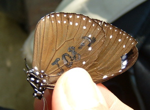 為了揭開源起於熱帶的紫斑蝶,究竟在台灣又濕又冷的冬季天候中採取何種越冬策略之謎,台灣蝴蝶保育學會冬季期間於北台灣進行紫斑蝶標放工作,而編號「J08-3」紫斑蝶,標放兩個月後於近日再捕獲,此為國內首隻標放後又被捕獲的紫斑蝶!