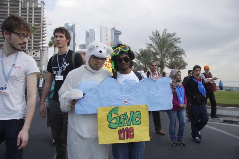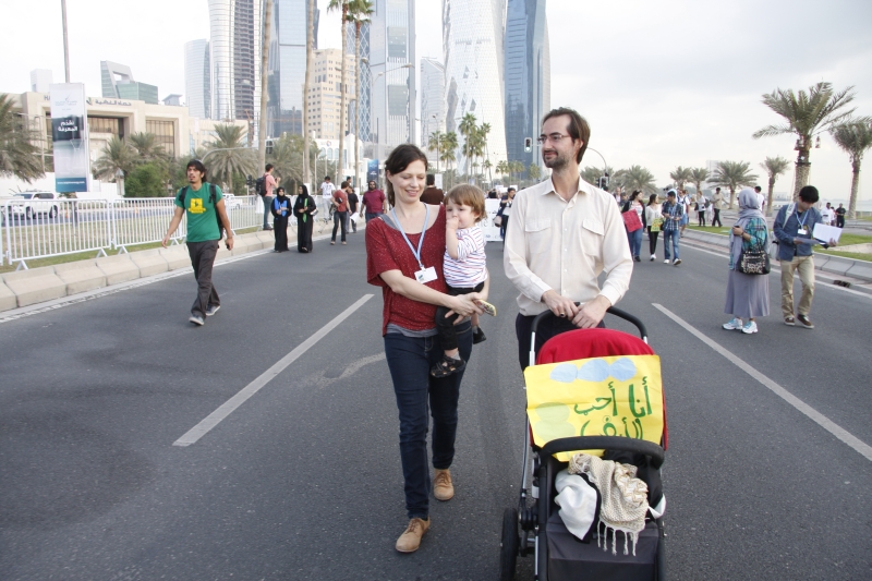 兩周會議間的周六辦理遊行,已經成為每年聯合國氣候變遷公約締約國會議COP的慣例,今年卻顯得十分特別,這是中東國家卡達人民第一次為了環保議題而上街遊行,可能也是第一次公民遊行。不僅卡達當地團體,也有許多鄰近阿拉伯國家人士前來參加,但人數遠比往年氣候大遊行少得多,僅約2百人上下,走不到兩公里便折返了,並仍未脫官方指導的成分。附帶一提,遊行開始時間是早上八點,誰會在週六早上八點出門遊行啊?
