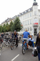 站在路邊看四處出沒的腳踏車是一種「哥本哈根樂趣」。在那裡待的幾天,我常站在路邊看,像是在星光大道旁等待大明星從眼前曇花一現。馬路上雖然沒有紅毯,車陣裡俊男美女一個少不了。不只男的女的還有老的少的露大腿的現胸肌的裝備齊全的踩菜籃車載小孩的,不禁慶幸還好不是評審不然真的難以決定大獎落何方。