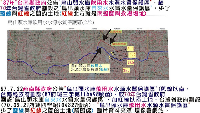 前言:環保署土基會於去年12月採樣檢測,包括永揚公司的10口監測井、環保團體的12口井、當地4口民井。檢測結果發現位於烏山頭水庫「自來水水源水量保護區」內的一口井,測到砷含量最高每公升 0.056毫克,已超過地下水汙染管制標準。(註1)