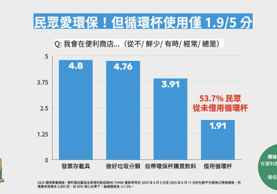 你有借用過便利商店的循環杯嗎?便利商店是台灣日常消費最重要的場域,RE-THINK與全家連續第二年發布《2025環保素養調查-便利商店篇》,透過問卷調查發現,民眾普遍對環保議題有高度認同感與積極度,垃圾分類、發票存載具等行動駕輕就熟,但有5...