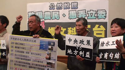 彰化縣溪州農民昨(12)日第12次北上,在行政院大門前頂著烈日從上午等到下午,結果等到政務委員張善政一句:「這有合約關係,不能隨便講一句話就叫他們停工。」這種說法不但毫無誠意、欺騙百姓,加上國科會之前宣布停工、又放任包商繼續動工,這一連串的...