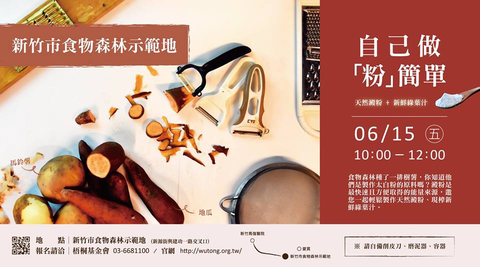 【免費活動通知】食物森林種了一排樹薯,您知道他們是製作太白粉的原料嗎?澱粉是最快速且方便取得的能量來源,6/15邀您一起到 新竹市食物森林 輕鬆製作天然澱粉、現榨新鮮綠葉汁。